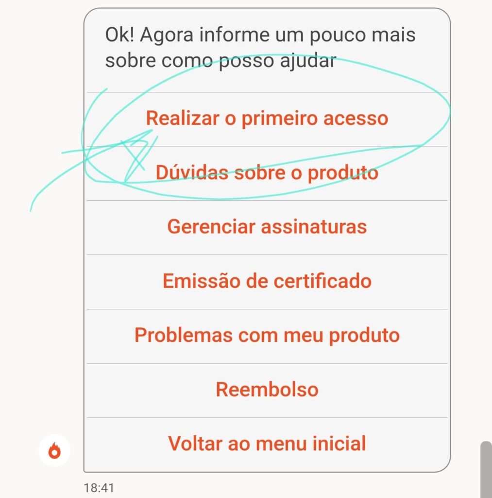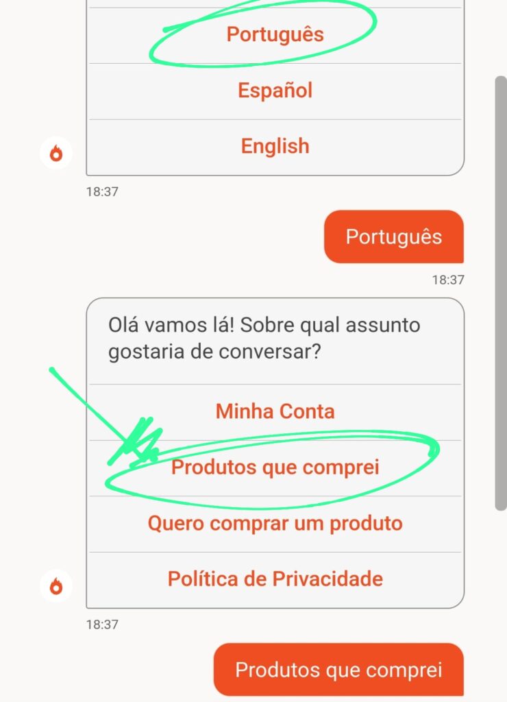 Para iniciar, basta clicar no ícone de chat, o botão laranja com formato de balão, localizado no canto inferior direito da sua tela. Se o ícone não estiver visível, clique no botão abaixo: