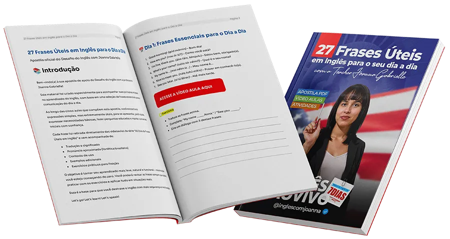 Receba acesso imediato à Apostila com 27 frases úteis em Inglês, incluindo pronúncia e atividades práticas!