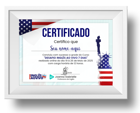 Ao concluir as aulas AO VIVO seu certificado é desbloqueado para ser emitido na plataforma HOTMART, em PDF e você poderá baixar, imprimir e emoldurar!