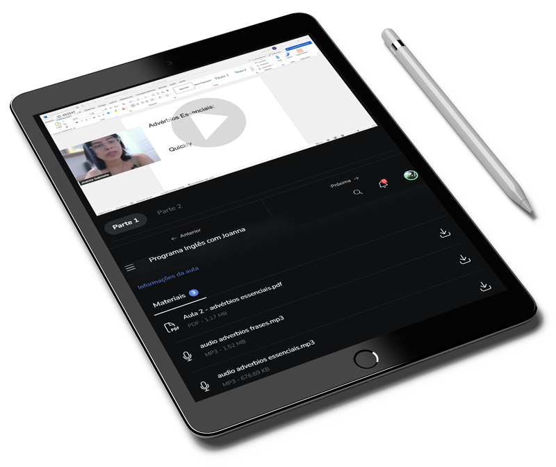 Você pode assistir as vídeo aulas, baixar os PDFs e Áudios e ainda praticar os exercícios propostos.